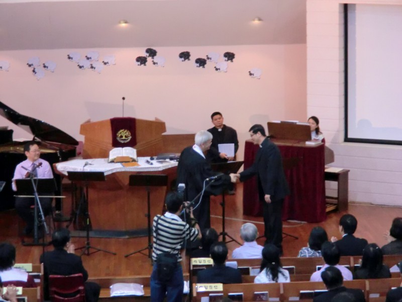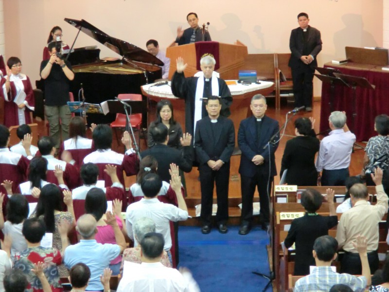三位新教牧与五位新长老与他们的配偶,众人给予热烈的掌声,承诺当敬爱他们、为他们祷告。
